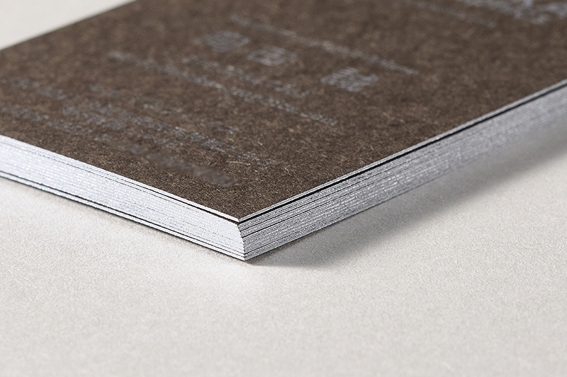 カラフルな小口染めとの相性がよく、個性的で存在感のある名刺に仕上がります。