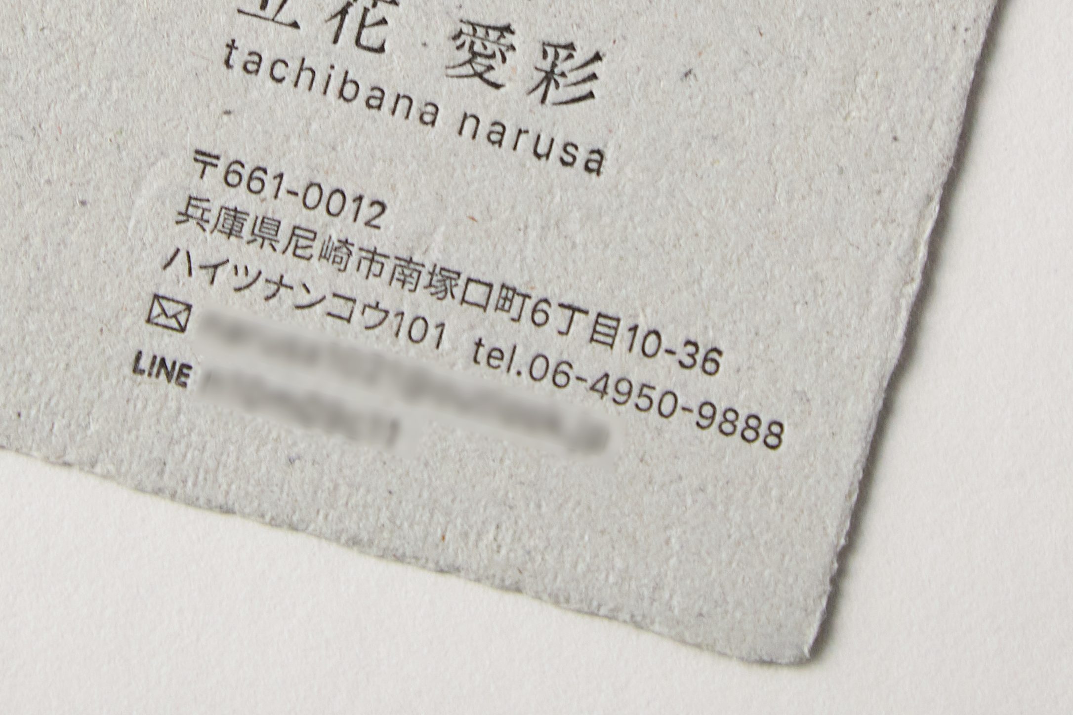 名刺 2025.10.24 耳付きの手漉き紙にスミで活版印刷。紙の個性で魅せるスタイリッシュな名刺 RoughDesign 様/名刺 印刷内容 ITEM 名刺 SIZE 名刺:W:約91×H:55mm PRINT 活版印刷 1c(color001 ブラック) PAPER 耳付き和紙 NOZOMI PAPER(NEWS)