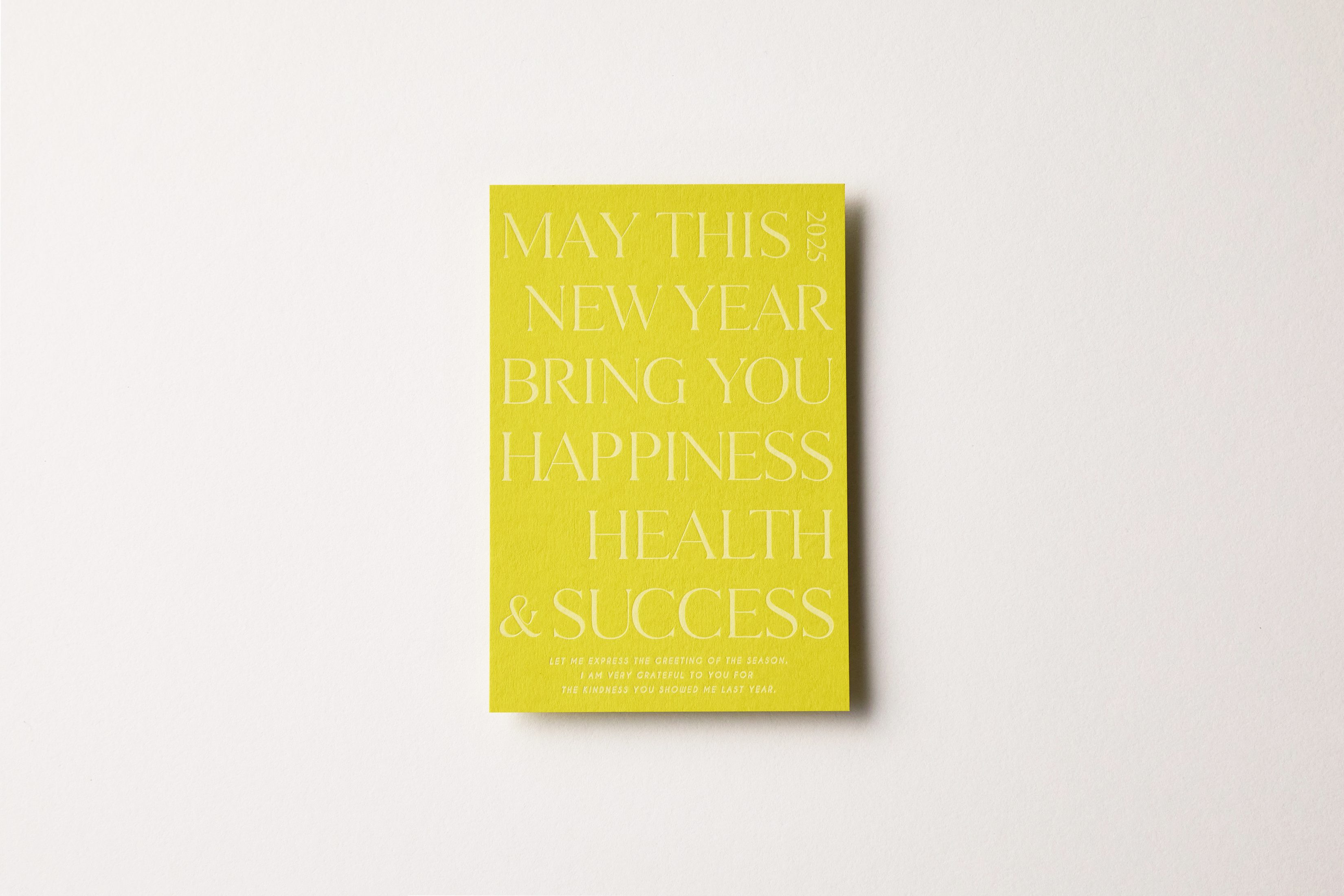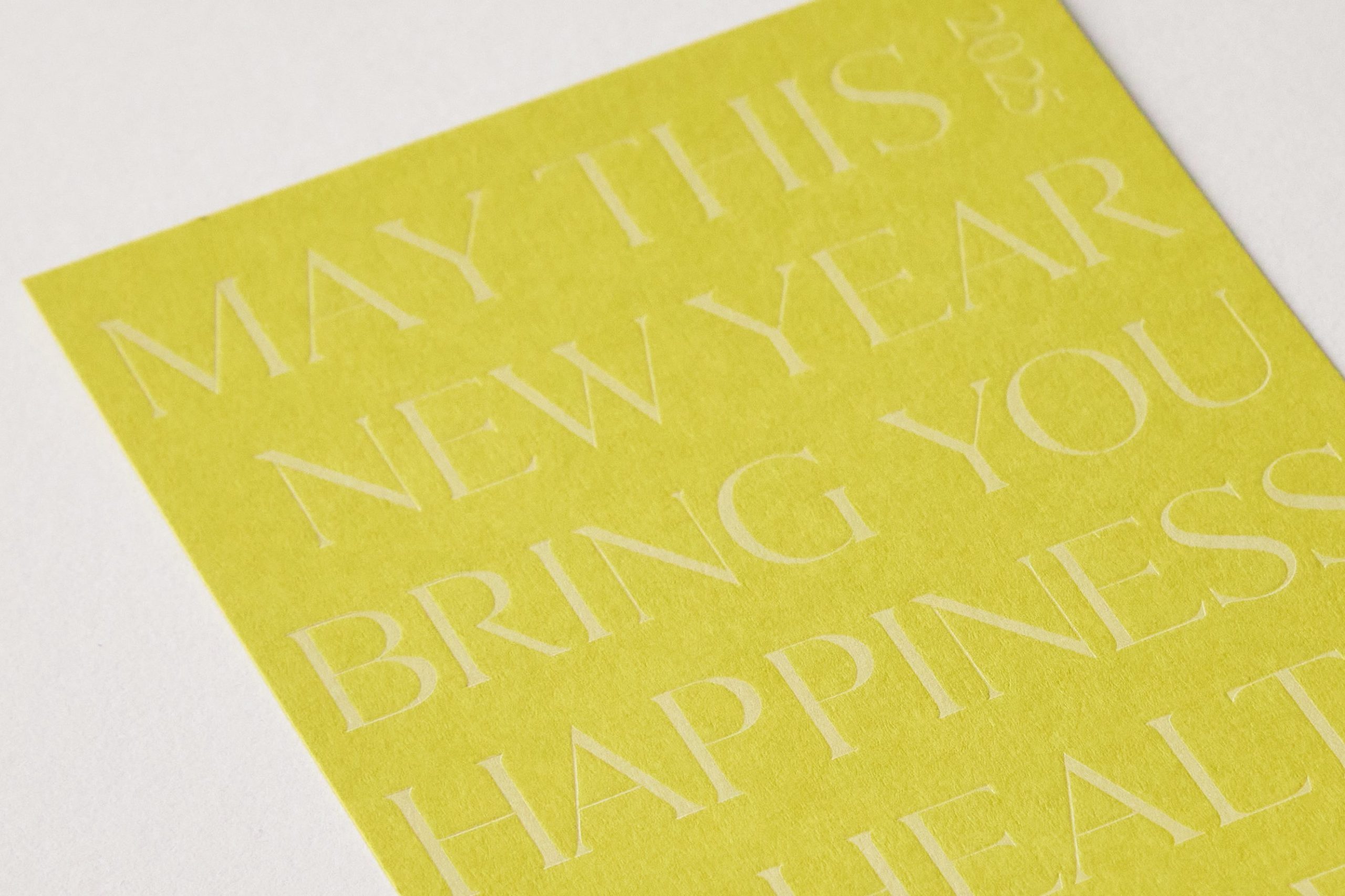 ポストカード 2025.11.17 マスカットグリーンに強く押した白活版が冴える。紙選びで差がつくおしゃれ年賀状 MIICHI 様/年賀状 Instagram @miichi_works 印刷内容 ITEM 年賀状 SIZE はがき:W:100×H:148mm PRINT 活版印刷 1c(ホワイト) PAPER カラープラン(マスカットグリーン)217kg